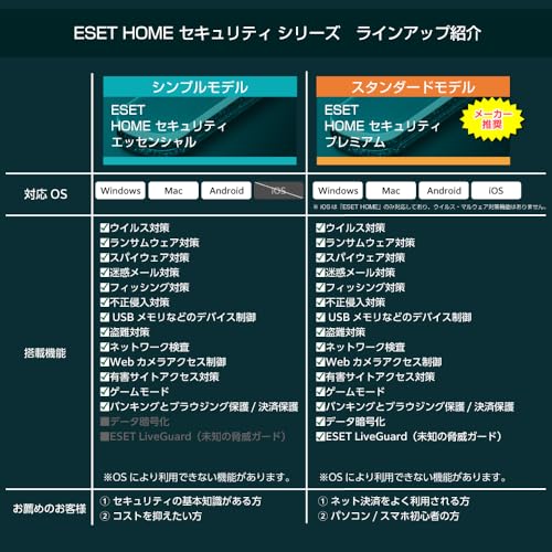 ESET HOME セキュリティ エッセンシャル | ウイルスバスター クラウド | ノートン 360 | マカフィー リブセーフ | カスペルスキー プラス | ZERO ウイルスセキュリティ | ZERO スーパーセキュリティ | |